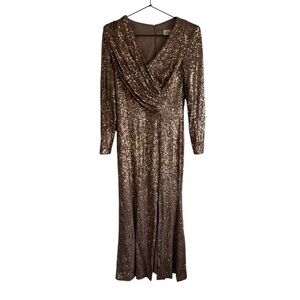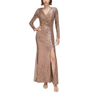 New! Eliza J Petite Sequined V-Neck Draped-Bodice Gown