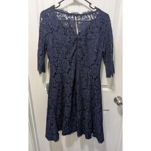 New Eliza J Quarter Length Sleeve Lace Fit Flare Dress Sz 12 Navy Blue Formal