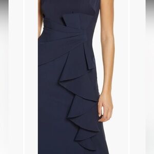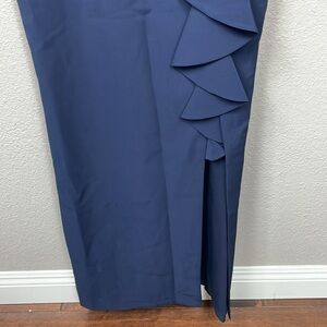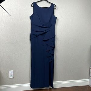 New Eliza J Ruffle Front Gown Maxi Dress Slit Navy Blue Sz 16