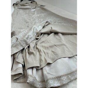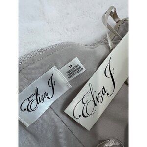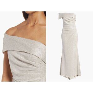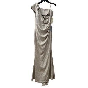 New Eliza J Size 10 One-Shoulder Glitter Mermaid Gown ruching, train Back Beige