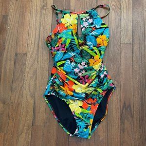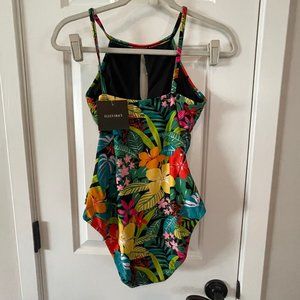 New Ellen Tracy Green Floral Swimsuit Size 8