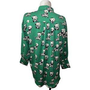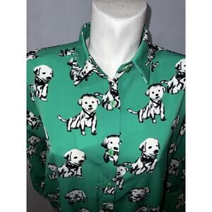 New Elli White Top Women's Size S Green Dog Print Button Shirt Collared Novelty