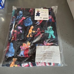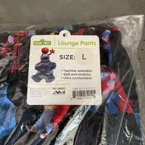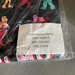 New in sealed plastic packaging Elmo adult lounge pants. Size L (36-38" with 31" inseam). You'll love relaxing in these super comfortable pants that feature all of your Sesame Street characters. These colorful lounge pants feature Elmo along with the words "Elmo Loves You". They have side seam pockets, a relaxed fit and elasticized waistband. They are in new condition since still in original packaging.