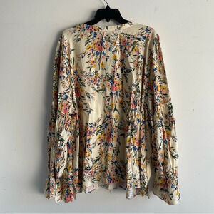 Eloquii Cream with Orange Green Floral Print Tie Neck Blouse Plus Size 26