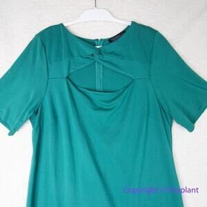 I adore this Eloquii Twist Front Sheath Dress in green! This stunning dress features a flattering twist front design and a chic cut-out detail in the chest area, adding a bold and contemporary touch. The back zipper ensures a seamless fit, while the round neck and short sleeves complete the sophisticated look. In size 18, this dress is perfect for both work and evening events, offering a blend of elegance and modern style!