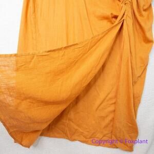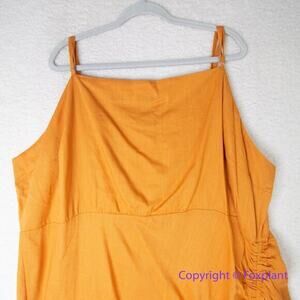 I adore this Eloquii linen-blend maxi dress in a radiant shade of gold! Its adjustable spaghetti straps ensure a perfect, customizable fit, while the drawstrings at the sides add a unique touch by gathering the fabric to create a flattering silhouette. The breezy side slit lends an effortless elegance and a hint of allure, making it perfect for warm-weather occasions or an evening out. Stylish and comfortable, this dress is a stunning choice for anyone seeking a blend of sophistication and ease.