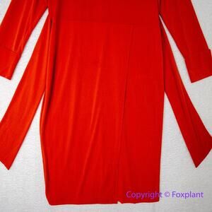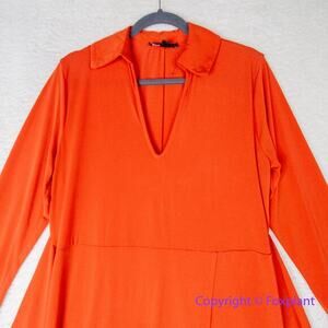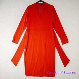 New! Eloquii orange red tie front long sleeve V neck collared dress, size 14