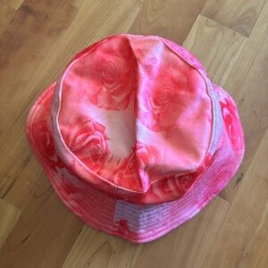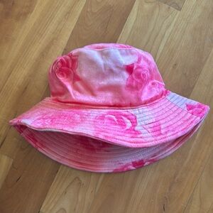 New Elsie & Fred Pink Velour Bucket Hat rose print fuzzy soft rave head gear