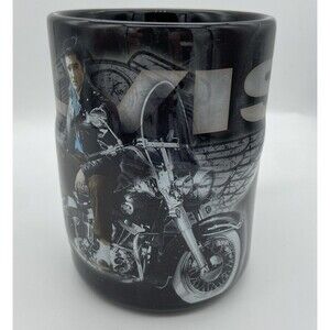 New Elvis Presley Coffee Mug Raised Motorcycle Wings The King 2016 Black Handle