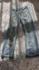 Stylish denim jeans adorned with cascading pearl and diamond embellishments. Perfect for a festival or concert.
