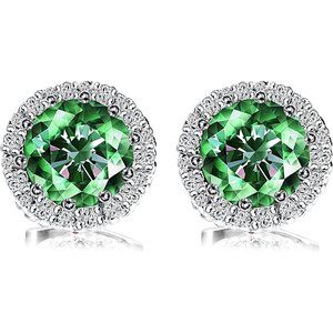 New Emerald/May Birthstone Stud Earrings Set, Copper Plated Cubic Zirc…
