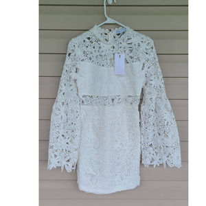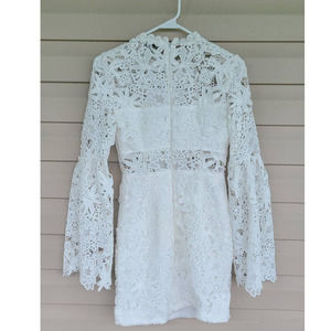 New Endless Rose White Cut Out Lace Mini Body Con Long Sleeve Dress XS