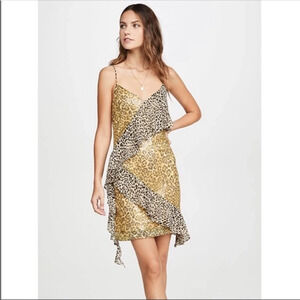 Gorgeous mixed animal cheetah leopard print asymmetrical mini dress with cascading ruffles and sequin embellishment. Size medium never worn and brand new with tags NWT!