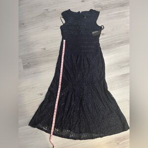 Stylish navy lace dress with elegant design. Ideal for special events.