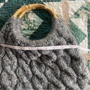 New England Artisan Grey Cable Knit Hand Bag With Bamboo Handles