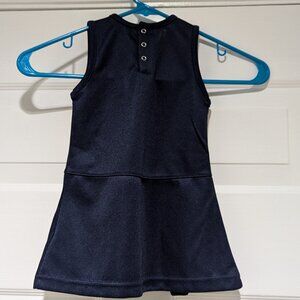Excellent condition, pre-loved toddler cheerleading uniform. New England Patriots, size 2T. Has three snaps on the back, brand is called NFL Team Apparel. Screenprinted team logo on center chest, plain back, pleated skirt. Cheer the Patriots on to their next victory!