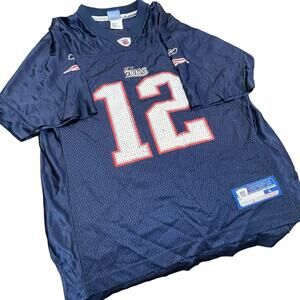 New England Patriots Tom Brady Reebok NFL Equipment #12 Jersey Men's XL Blue Red GOAT PATS12 Football Quarterback QB12