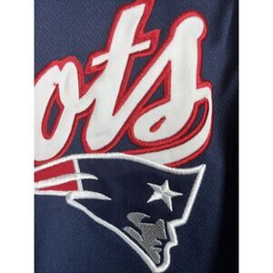 The product is a New England Patriots NFL Ultra Game men's size M button-down baseball jersey in blue. It is officially licensed by the National Football League (NFL) and is perfect for fans of the team. Made by Ultra GAME, this jersey is a must-have for anyone looking to show their support for the Patriots during the regular season. The jersey is designed for comfort and style, making it a great addition to any football fan's wardrobe.