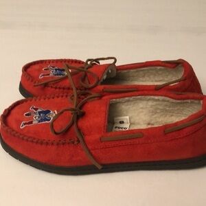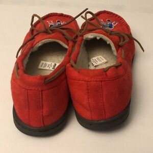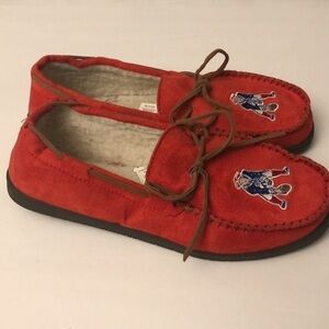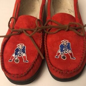 There is a pair of New England Patriots NFL-FOCO Mens Team Color Big Logo Moccasin Slippers Size S, not sure what size that translates to but the bottom measures 11”