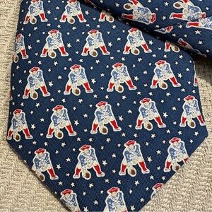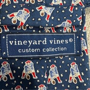Vineyard Vines custom collection 100% silk New England Patriots necktie. Blue/white/red pattern of football players.