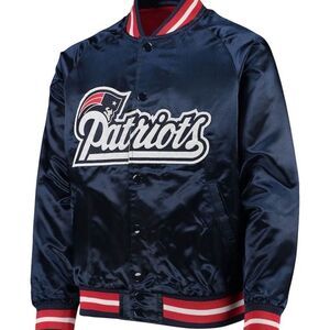 New England Patriots size XLNavy Satin Raglan Full-Snap Jacket