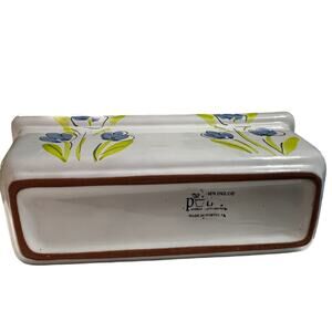 New England Pottery Rectangle White Planter with Blue Flowers 10" x 4.5"