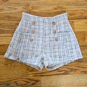 New Entro Size M Tweed Shorts Black and White with Gold Buttons Pockets Neutral