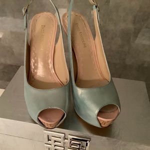 New Enzo Angiolini Irridescent Aqua Peep Toe Heels