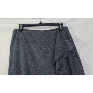 The New Equipment Femme Climmie Ruffle Midi Skirt in Eclipse Medium is a stylish A-Line skirt designed for women. Made from viscose material, this midi skirt features a polka dot pattern and a zip closure. The ruffle detail adds a touch of femininity to the overall look, making it a versatile piece that can be dressed up or down for various occasions. The elegant color eclipse adds a sophisticated touch to this trendy skirt, making it a must-have for any fashion-forward wardrobe.
