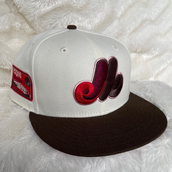 New Era 59FIFTY Hat MONTREAL EXPOS Double Scoop Collection Cream Red Brown 7 5/8
