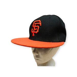 New Era 59FIFTY San Francisco Giants Black Orange Hat Cap Fitted 7 1/8 Hat EUC
