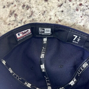New Era 59fifty Atlanta Braves Fitted MLB Hat Size 7 7/8 62.5cm Blue Red Chop