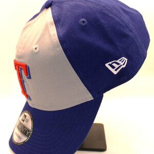 Authentic New Era 9TWENTY Texas Rangers adjustable “dad hat” (OSFM) featuring a white crown with a royal blue brim and raised red T logo. MLB Genuine Merchandise hologram present; relaxed unstructured 6-panel with curved visor, embroidered eyelets, and snapback closure. 100% cotton). New sticker/labels intact, clean crown, crisp embroidery. Great everyday fan cap.