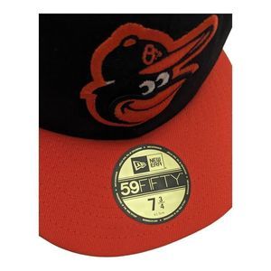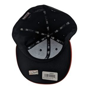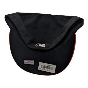 Stylish New Era cap with a bold logo. Black crown with orange brim and accents. Perfect for sports fans.