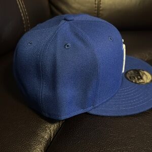 The bright blue and white color scheme is eye-catching and the snaps in the back makes it easy to fit most men comfortably. Whether you're heading to the game or just want to show off your team spirit, this hat is the perfect accessory. Order now and add it to your collection!