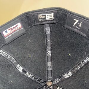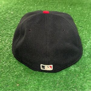 New Era cap in black with red accents. Features official MLB logo. Perfect for fans.
