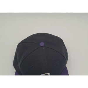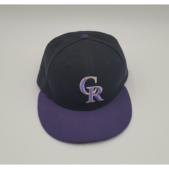 New Era 59Fifty Colorado Rockies Hat 7 1/8 Authentic Collection On Field. Light wear from being worn Black and Purple. 100% polyester