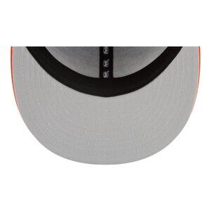 The FELT X Houston Astros Low Profile 9FIFTY Snapback features an embroidered Astros wordmark at the front panels with a team logo at the right-wear side and an orange visor. Additional details include a gray undervisor with a butterfly, bee, and FELT logo above a snapback closure at the rear.