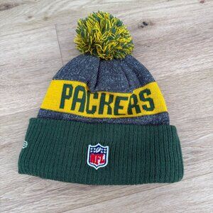 New Era Green Bay Packers Pom Beanie Knit Hat OSFM Gray Yellow NFL Fleece NWOT