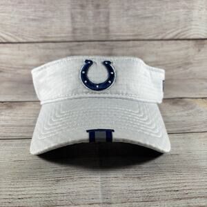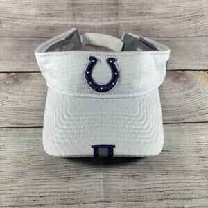 New Era Indianapolis Colts 100 Years Adjustable Strap back Visor. There is a dirt stain in bill and inside sweat band of visor. Please see all pictures for reference and condition.