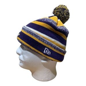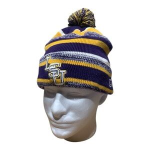 Keep your child warm and stylish with this LSU striped beanie. Featuring vibrant purple and gold colors, it's perfect for young fans. The soft material ensures comfort all day long.