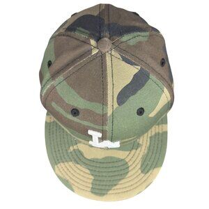 New Era Los Angeles Dodgers Camo Fitted Hat Size 7 1/8 Cotton Green & Brown