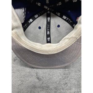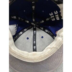 Here is a pre-owned Dodgers themed fitted hat. The size is 7 3/8. It is a new era genuine merchandise hat. All the logos and colors are good. The hat could use a good scrubbing on the inside rim. People who like vintage don't want them cleaned, so this hat has not been washed.