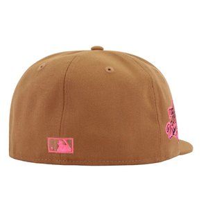 Introducing the New Era Los Angeles Dodgers Upside Down Logo 59FIFTY Fitted Hat, a stylish accessory that combines a classic wheat color with eye-catching pink lettering. This hat is designed to provide a comfortable and snug fit, thanks to its fitted style. Made by New Era, a renowned brand known for their quality craftsmanship, this hat is perfect for fans of the Los Angeles Dodgers who want to showcase their team pride in a unique and fashionable way.