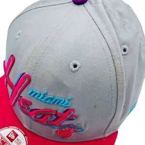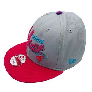 The product is a New Era Miami Heat Hardwood Classics Cap Hat, designed for basketball fans. It is multi-color and features the Miami Heat team logo. This unisex adult cap is one size fits all, making it suitable for fans of the National Basketball Association (NBA) team.