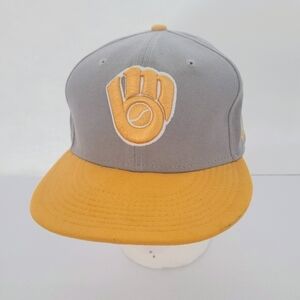 New Era Milwaukee Brewers Gray and Yellow Men's Cap Sz.7 3/8