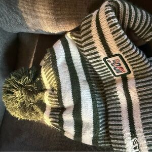 New Era NWT New York Jets Pom Knit Beanie Green White Striped Hat Unisex