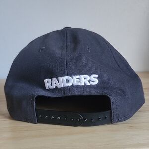 Black and gray snapback with Oakland Raiders logo. Embroidered details on front.