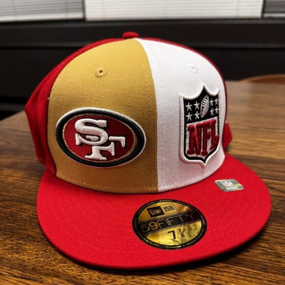 Show off your love for the San Francisco 49ers with this stylish New Era NFL Saloon 90's Logo Tan 59Fifty Fitted Hat. This unisex adult hat is officially licensed and made with high-quality materials. The hat features a multi-color design with the iconic San Francisco 49ers logo and a side patch to commemorate their 60th season.