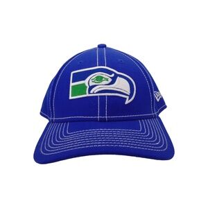 New Era Seattle Seahawks Hat Cap 9Forty NFL Adjustable Blue With White Stitching
